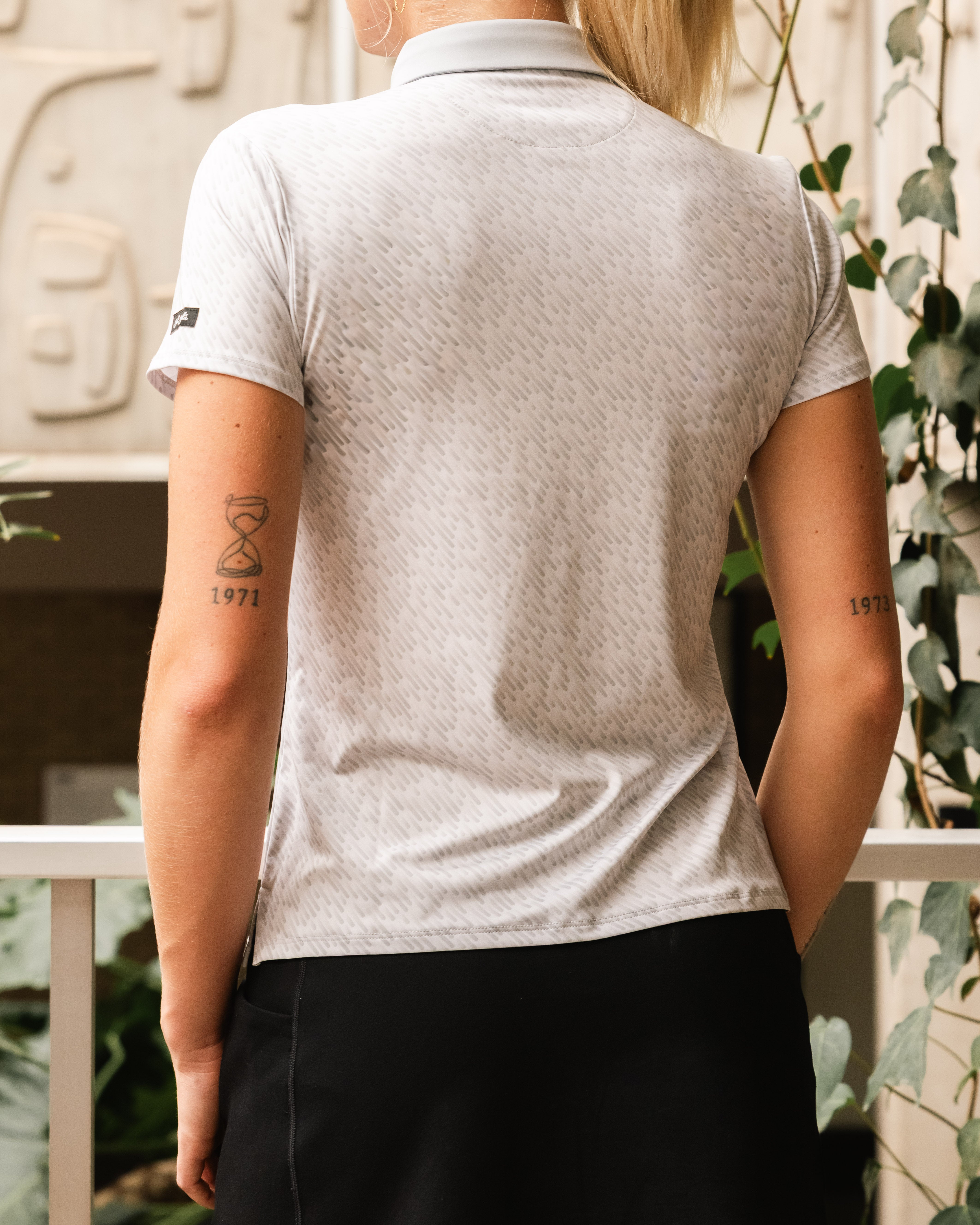 Who says chaos can't be stylish? This grey Cosmic Chaos polo features ASU Pitchforks across our boldest women's pattern, officially licensed and designed for Sun Devils who command attention on and off the course. Moisture-wicking performance meets maroon and gold pride.