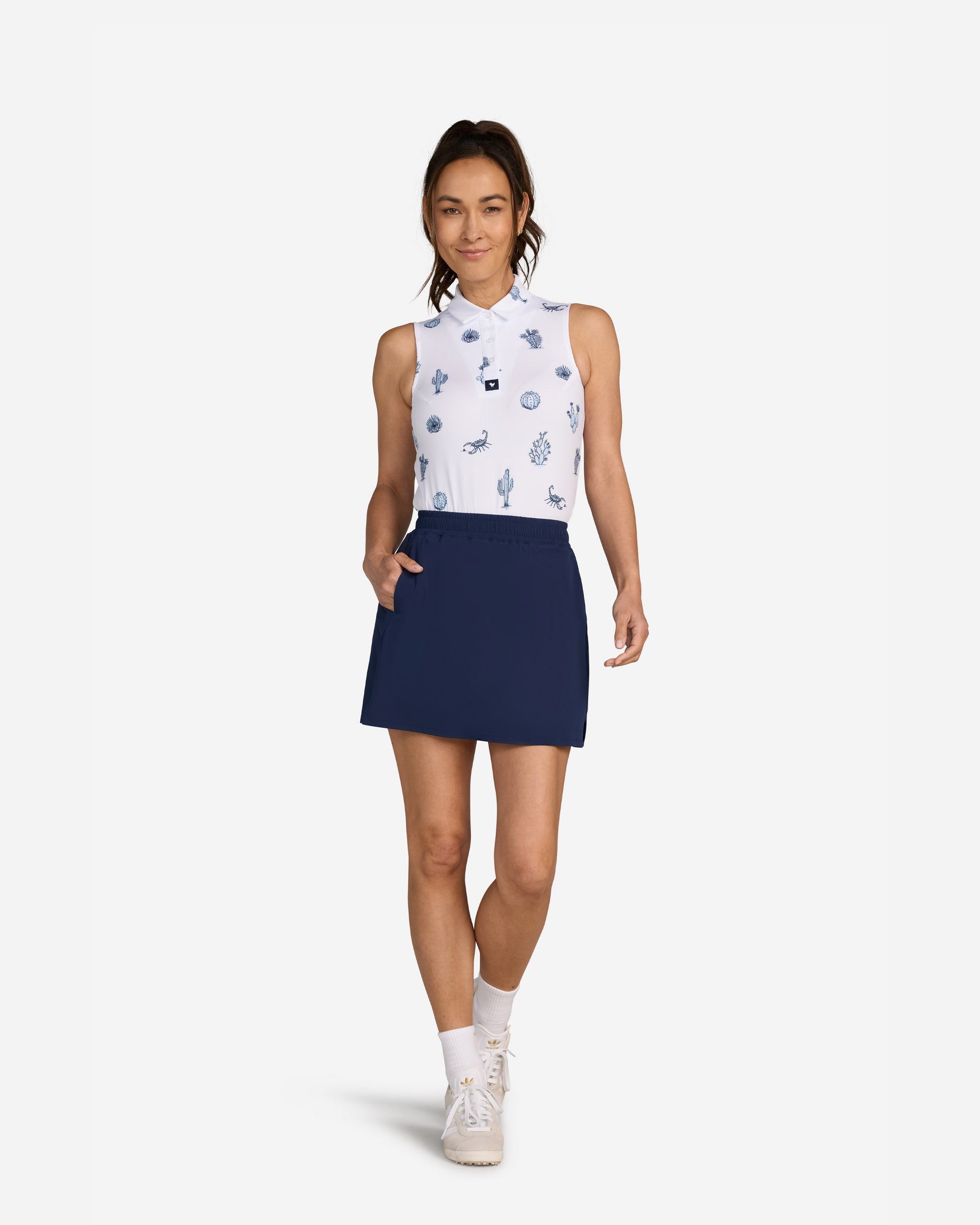 Golf's Rebellion—our sleeveless printed polo that brought confidence and style to the women's game. Engineered with performance features for golfers who aim straight for the pin, it's the Bad Birdie original that proved women's golf could be both powerful and fearless.