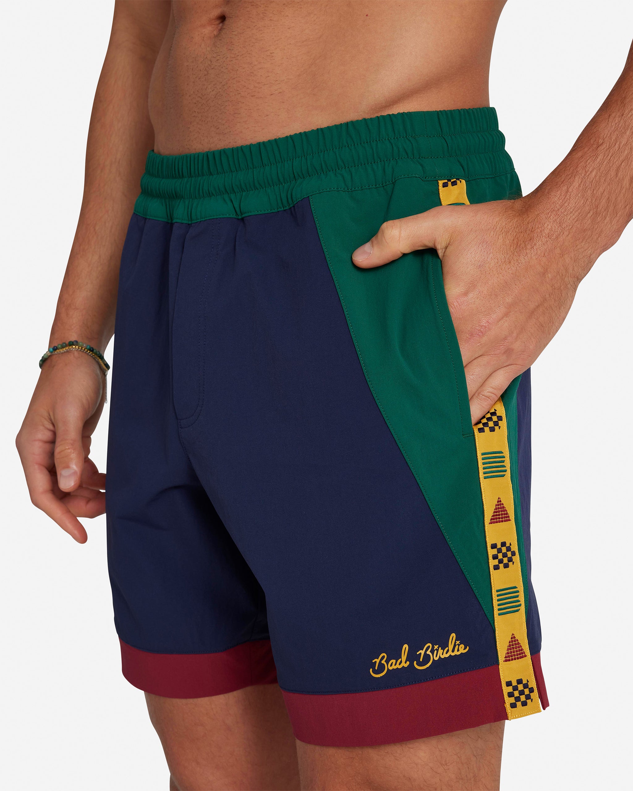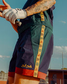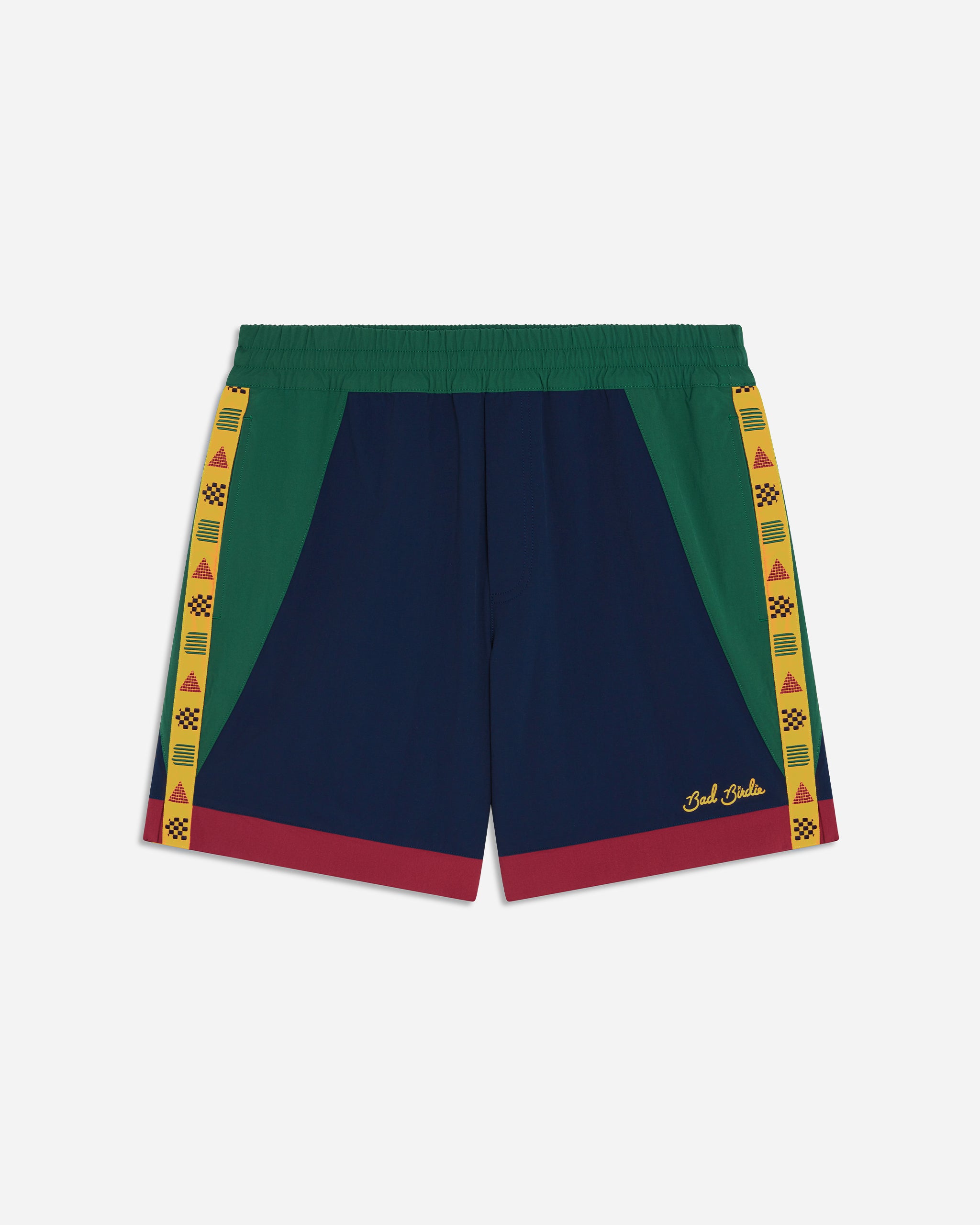 Relaxed fit, lightweight Olympic-inspired woven shorts. Custom 'BAD' taping at the sides, Open hand and back pockets.
